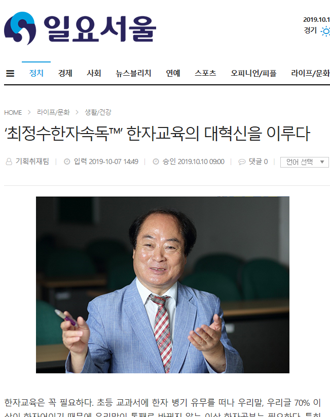 일요서울 - ‘최정수한자속독™’ 한자교육의 대혁신을 이루다