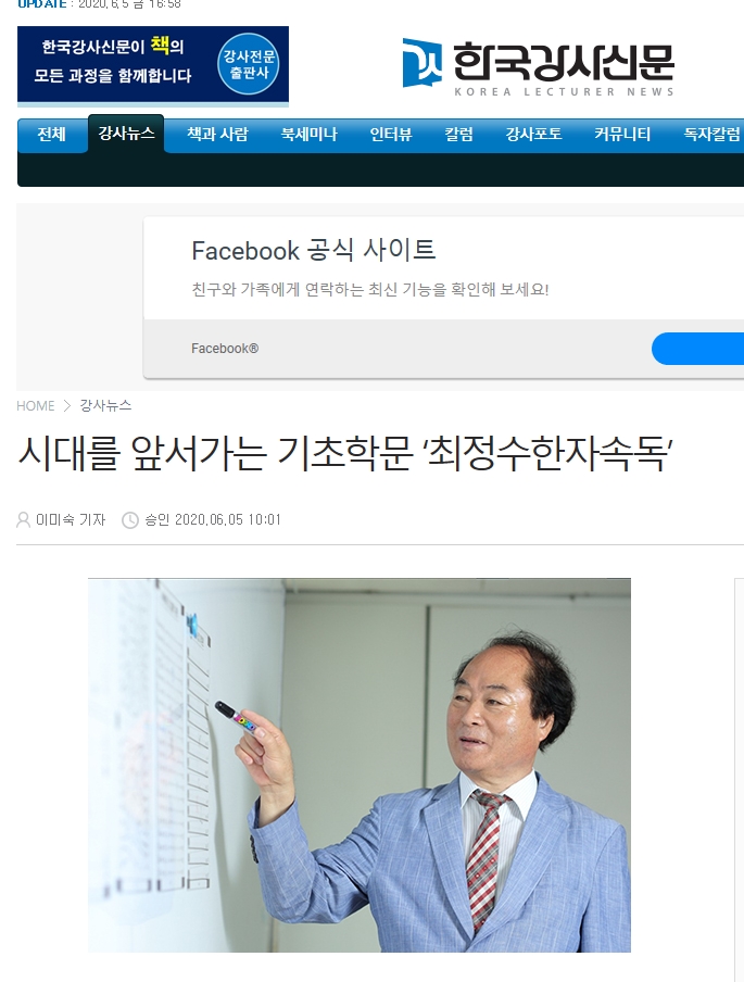 최정수 한자속독 최정수 교수는 “코로나가 장기화 되는 가운데, 저는 요즘 논문준비에 모든 시간을 보내고 있습니다. 최정수한자속독이 획기적이란 사실이 학문적, 과학적으로 뒷받침될 수 있도록 모든 이론과 실험결과를 마지막으로 최종정리하고 있습니다.”