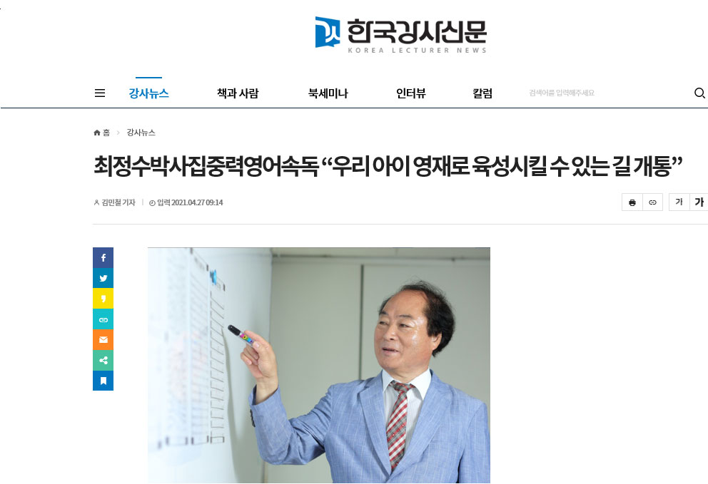 자세한 내용은 ‘최정수박사 집중력영어속독’ 공식 홈페이지를 통해 확인할 수 있다.