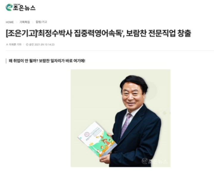 조은뉴스 " '최정수박사 집중력영어속독', 보람찬 전문직업 창출 보도 " 2021.9.10 기사입력 2021.09.10 15:12 댓글 0 http://www.egn.kr/news/articleView.html?idxno=201156 #최정수박사집중력영어속독 #집중력영어속독 #최정수한자속독 #한자속독 #두뇌계발 #집중력 #한자 #독서능력 #인성교육 #방과후강사 #방과후교사 #강사양성 #강사교육 #주부취업 #30대취업 #40대취업 #50대취업 #20대취업 #강사모집 #주부일자리 #미래유망직종 #평생교육원 #초등방과후 #최정수박사한자속독 #한자속독 #강사자격증취득 #방과후교사 #온라인자격증 #온라인수업 #인터넷강의 #자격증취득 #방과후선생님 #한자선생님 <저작권자ⓒ최정수박사한자속독뉴스 & www.hanjasrnews.com 무단전재-재배포금지. > BEST 뉴스 위로 목록 이름 비밀번호 자동등록방지 81287 등록
