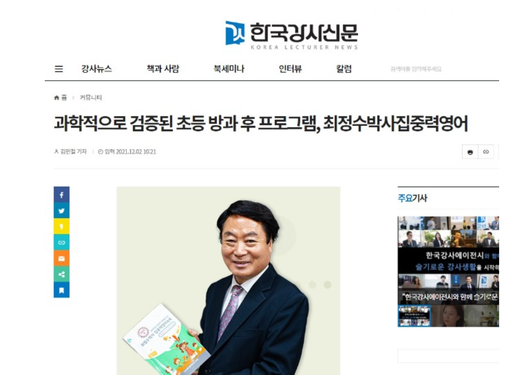 한국강사신문,"과학적으로 검증된 초등 방과후 프로그램, 최정수박사집중력영어'" 보도 2021.12.2 기사입력 2021.12.03 10:55 댓글 0 http://www.lecturernews.com/news/articleView.html?idxno=82297 [박성은 기자 bjt50@daum.net] 이 기자의 다른 기사 보기 #최정수박사집중력영어속독 #집중력영어속독 #최정수한자속독 #한자속독 #두뇌계발 #집중력 #한자 #독서능력 #인성교육 #방과후강사 #방과후교사 #강사양성 #강사교육 #주부취업 #30대취업 #40대취업 #50대취업 #20대취업 #강사모집 #주부일자리 #미래유망직종 #평생교육원 #초등방과후 #최정수박사한자속독 #한자속독 #강사자격증취득 #방과후교사 #온라인자격증 #온라인수업 #인터넷강의 #자격증취득 #방과후선생님 #한자선생님 <저작권자ⓒ최정수박사한자속독뉴스 & www.hanjasrnews.com 무단전재-재배포금지. > BEST 뉴스 위로 목록 이름 비밀번호 자동등록방지 70409 등록