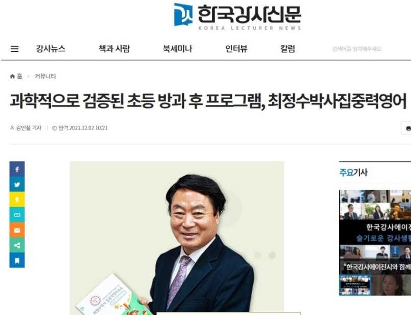 한국강사신문 김민철 기자] 초등교육이 중요한 이유 중 가장 큰 것은 유·초등생은 인격형성과 두뇌계발 황금기이기 때문이다. 이때 어떤 공부를 시킬 것인가 깊이 생각하는 것이 중요하다.30여 년간 실험·실습·연구하여 두뇌계발·집중력 관련 발명특허 획득한 프로그램 원리에 맞추어 영어를 활용하여 좌뇌·우뇌 활성화, 마음의 근육인 집중력 강화, 영어 빠르고 정확히 학습, 메타인지 융합교육인 최정수박사집중력영어은 유·초등생 전문 프로그램이다. 무엇보다 바른 인성과 두뇌계발은 바늘과 실이라는 뇌생리학에 따라 과학적으로 두뇌훈련 중 올바른 인성이 자연적으로 확립되는 획기적인 프로그램이므로 유·초등생 필수과정이다.최정수박사는 “학교에서 배운 과목을 잊어버렸기 때문에 방과 후, 학원 등에서 복습 등 열심히 해도 성적은 항상 고만고만하고 아까운 시간만 낭비하고 학생들 고생만 시키고 있으니 공부하는 순서와 방법을 바꾸자. 인생의 봄철인 유·초등 때는 두뇌를 명석하게 육성시키면 학교에서 배운 것 모두 이해되고 원리 터득되므로 복습하느라 고생하지 않아도 공부 잘할 수 있다.”라고 전했다. 이어 “복습하는 시간에 두뇌 및 독서훈련하면 종합적인 사고력 향상으로 창의적인 모범생이 될 수 있는 바른길을 두고, 엉뚱한 길로 가고 있다. 공부 잘하려면 초등 때 좌뇌·우뇌 계발과 집중력을 강화시키면 되는데, 두뇌계발 황금기를 놓치고 암기, 복습한다고 귀중한 시간만 보내고 있으니 너무나 안타깝다. 이렇게 해서 언제 이웃나라들을 추월하고 세계인들과 경쟁할 수 있겠는가?”라고 덧붙였다.도시, 농어촌, 산간벽지까지 1명의 초등생이라도 소외됨 없이 뛰어난 교육 혜택을 골고루 주어야 되므로 강사양성이 시급한 문제이다. 본 강사는 영어실력과 상관없이 초보자도 유능한 강사로 책임육성하고 있다. 지도할 프로그램이 완벽하게 구성되어 있기 때문이다. 더불어 긍정적인 성격 소유자는 수료 후 바로 교육 활동을 할 수 있도록 안내하고 있다.한편, 2021년 12월 18일 오후 2시~5시 부산 동아대 평생교육원, 2021년 12월 19일 오후 2시~5시 서울 경기대 평생교육원에서 최정수박사집중력영어 강사 무료 세미나가 진행 될 예정이다. 보다 자세한 사항은 최정수박사집중력영어 홈페이지 또는 대표전화를 통해 문의 가능하다.출처 : 한국강사신문(http://www.lecturernews.com)